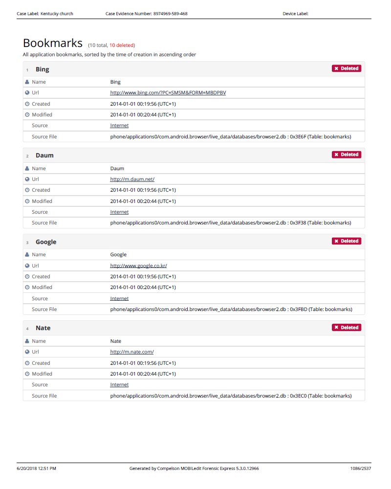 browser bookmarks can be obtained on iOS devices (Safari bookmarks) and