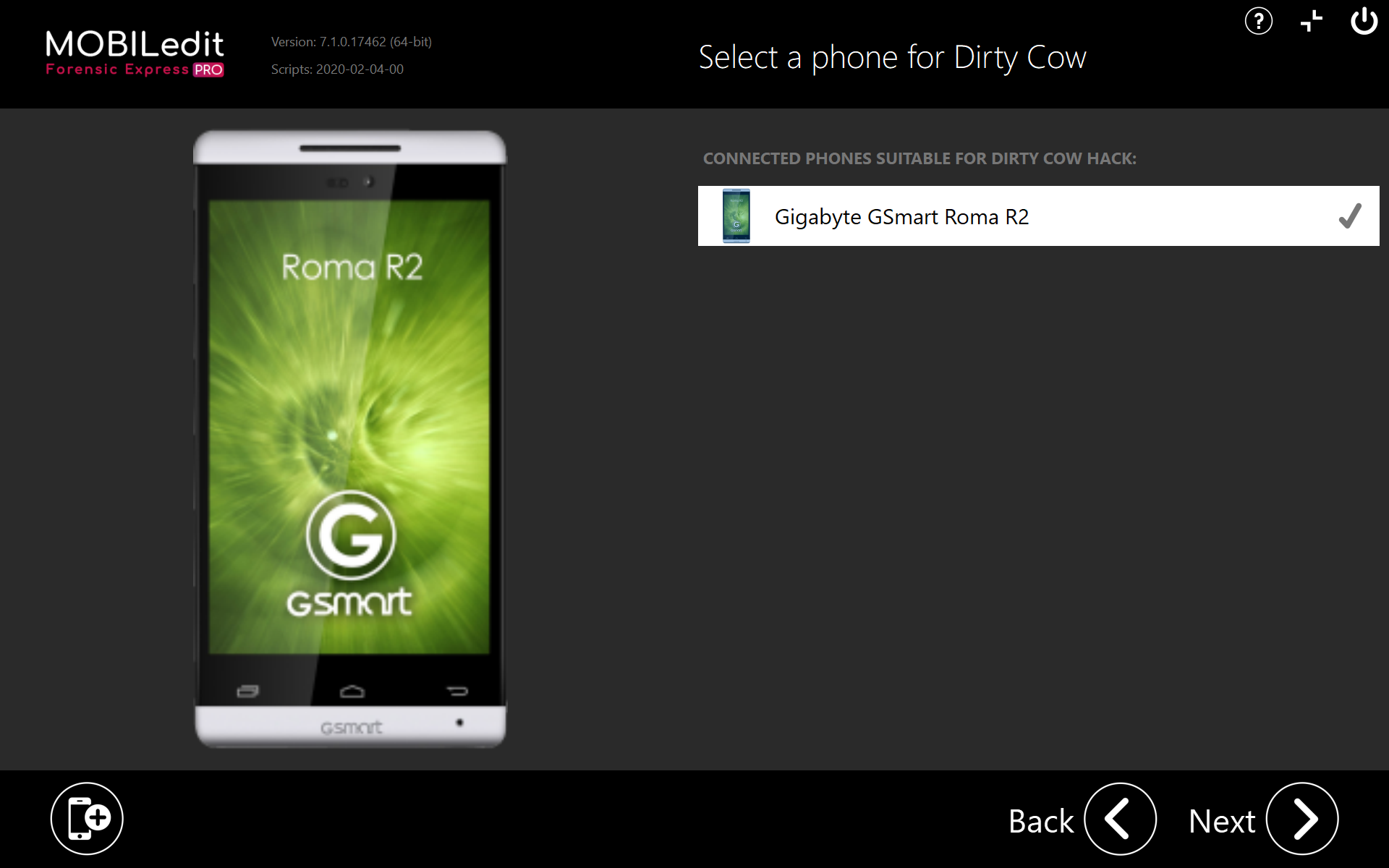 1. Click on "Hack phone" and choose "Root using Dirty Cow".