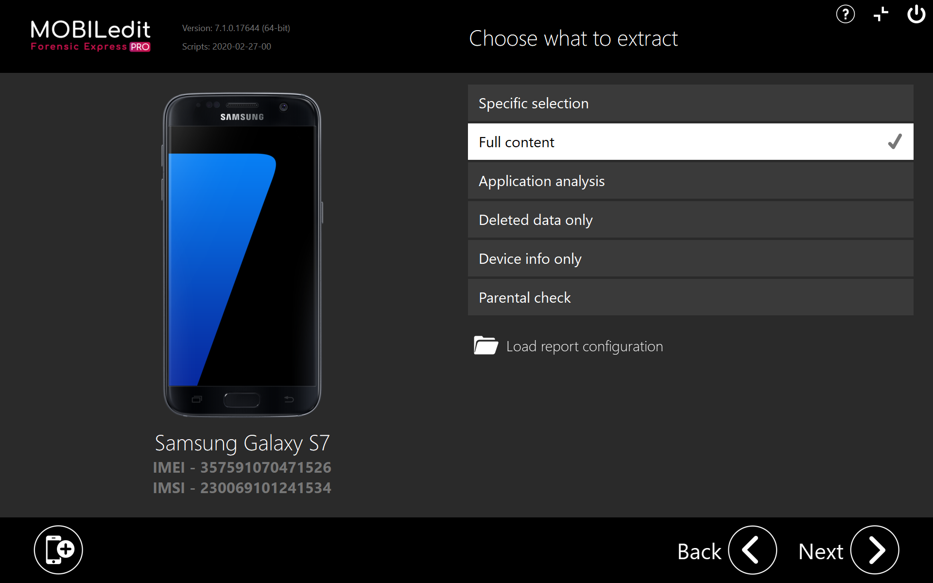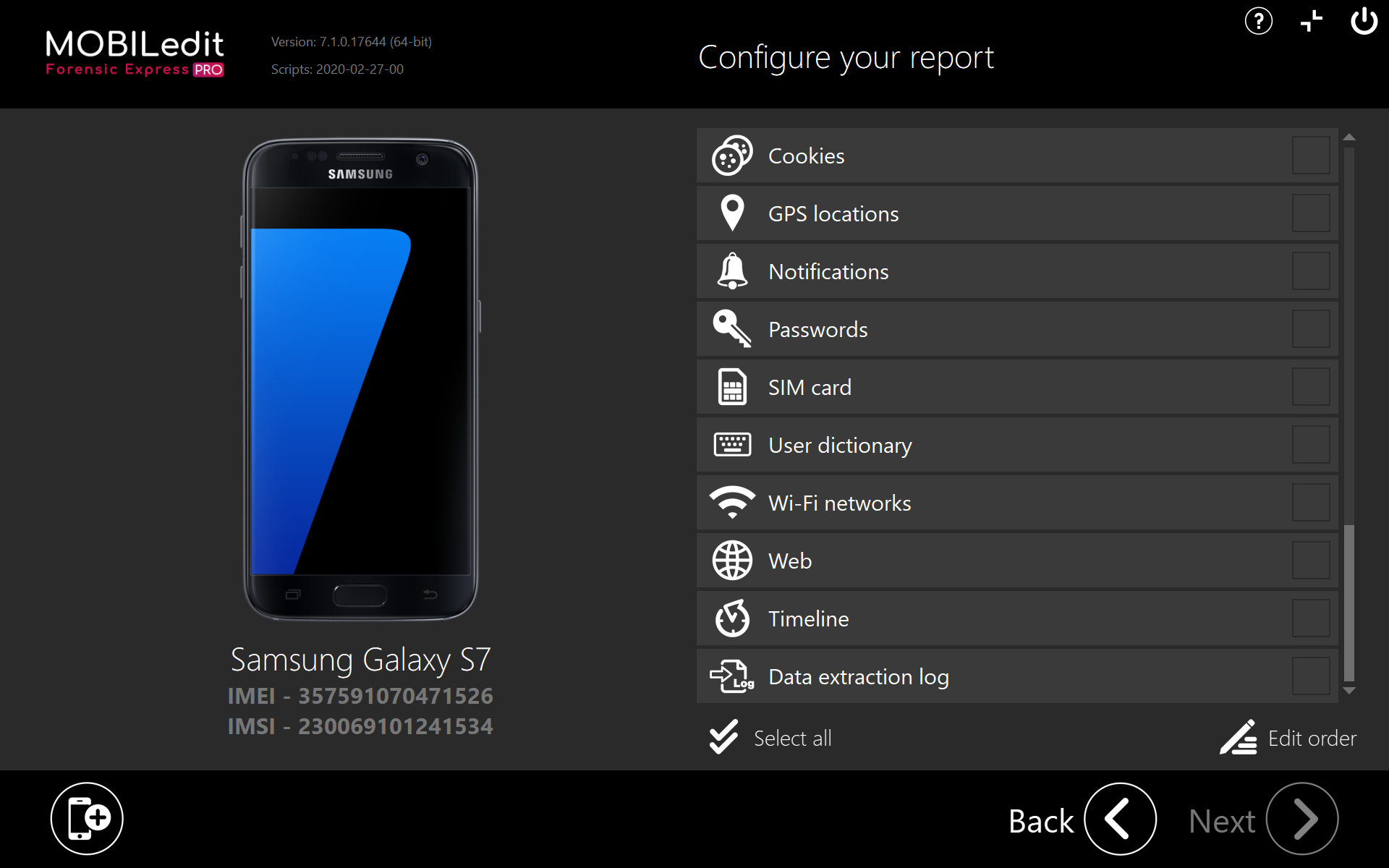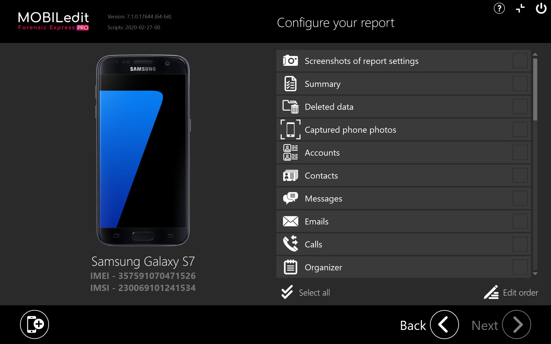 Upon clicking on the Next button you will be asked to select the categories you want to be exported from the phone as seen on the screenshots below. Moreover, additional filters can be set for each such category.