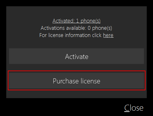 Single Phone License means that only one phone can be activated to work fully within our software. After you activate the license it becomes locked to the one specific phone and cannot be changed. Only option of how to activate different phone is to ...