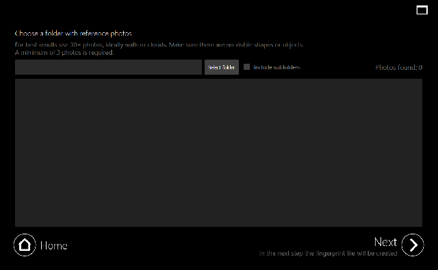 5. Now click on Next and the application will proceed to create the sensor fingerprint. You will be asked to select a location in your computer where it will be stored. The process of fingerprint creation will then start automatically and will take up to few minutes, depending on the number of photos that have been loaded.