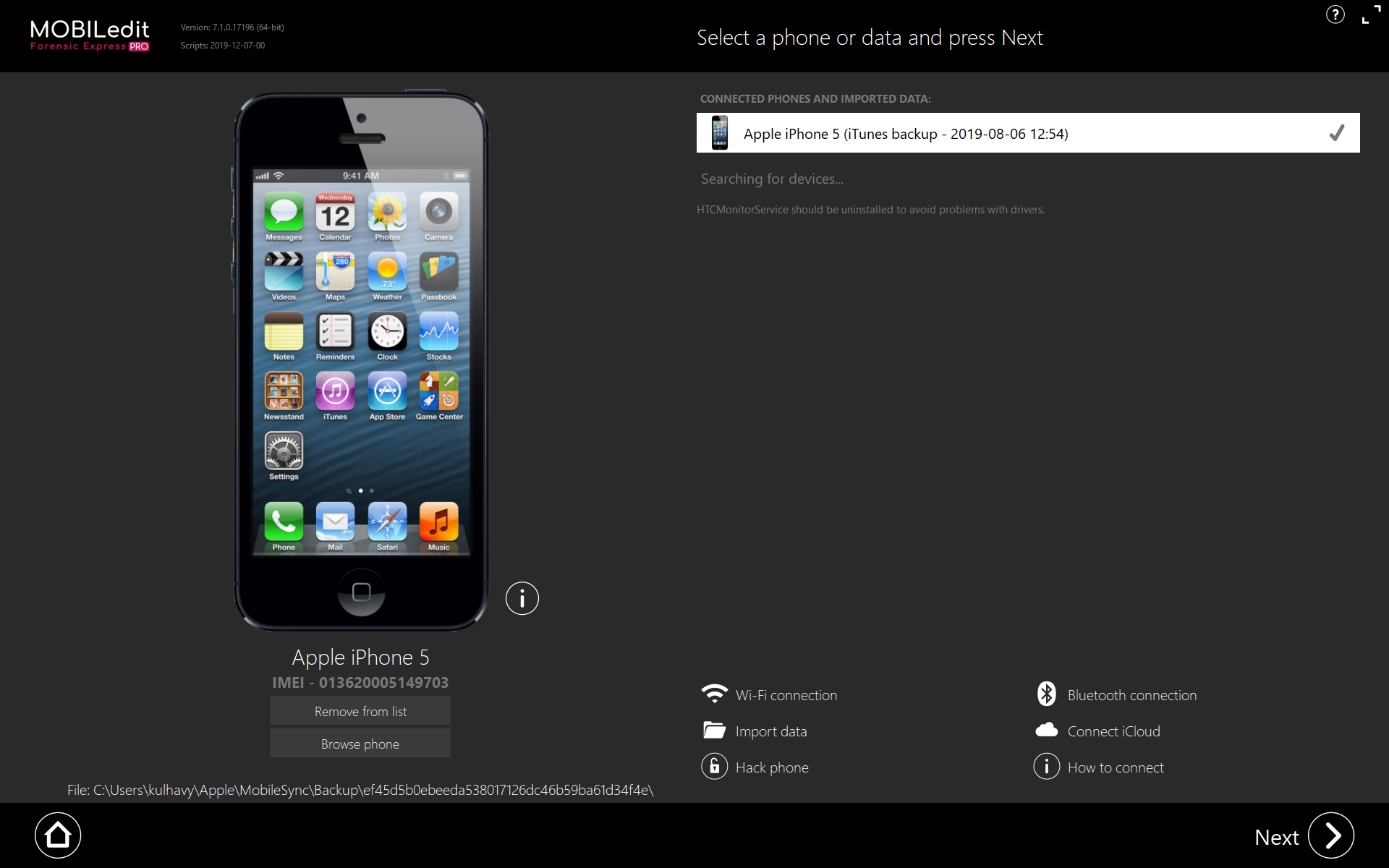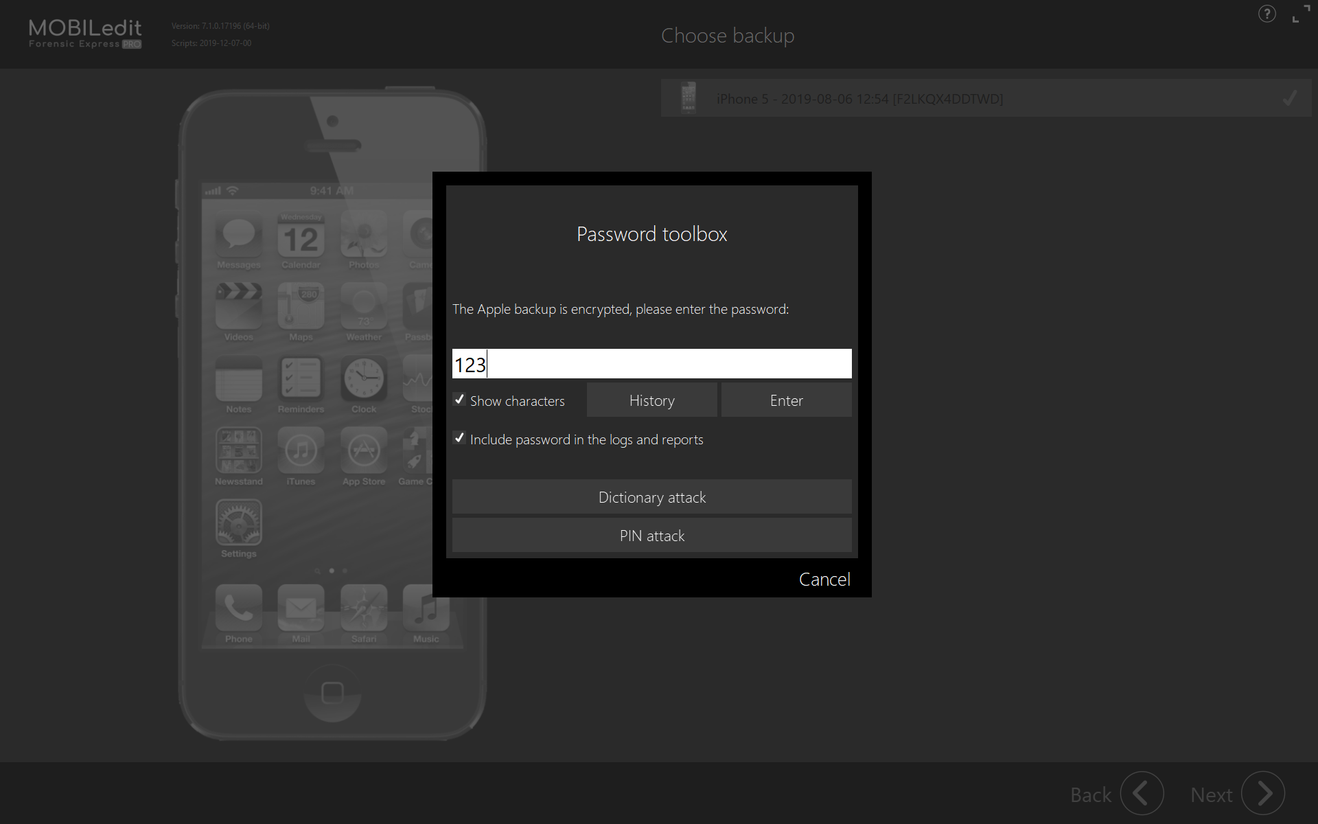 Once you've selected a backup, click Next and enter the password for the backup (if required).